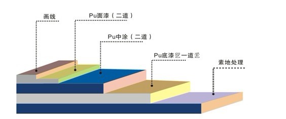 彈性優(yōu)異、硬度適中、接著性強、耐磨性好、平坦性優(yōu),全天候可使用,清潔保養(yǎng)容易維護修補容易。